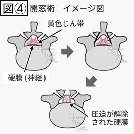 まず、4番目と5番目の二か所の神経圧迫を解除するための手術です。(開窓術 図④)