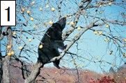 画像1.柿を食べる熊 2.身を守るより駆除では!